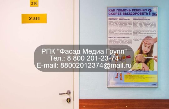 Реклама в поликлиниках отличается персональным действием на целевую аудиторию. Форматы размещения рекламы: стенды, листовки, буклеты, мониторы, плакаты. Период размещения: 2 мес. Минимальный пакет: 5 стендов